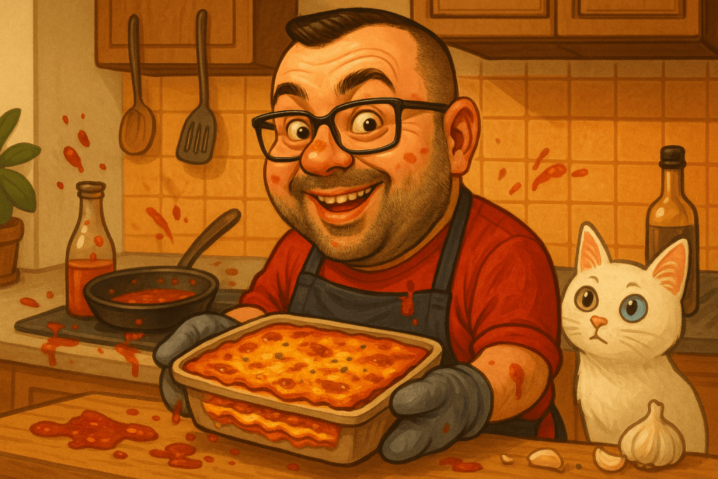Experimente culinare, lasagna, mici dezastre gastronomice și momente cu pisica jurizând gustările.